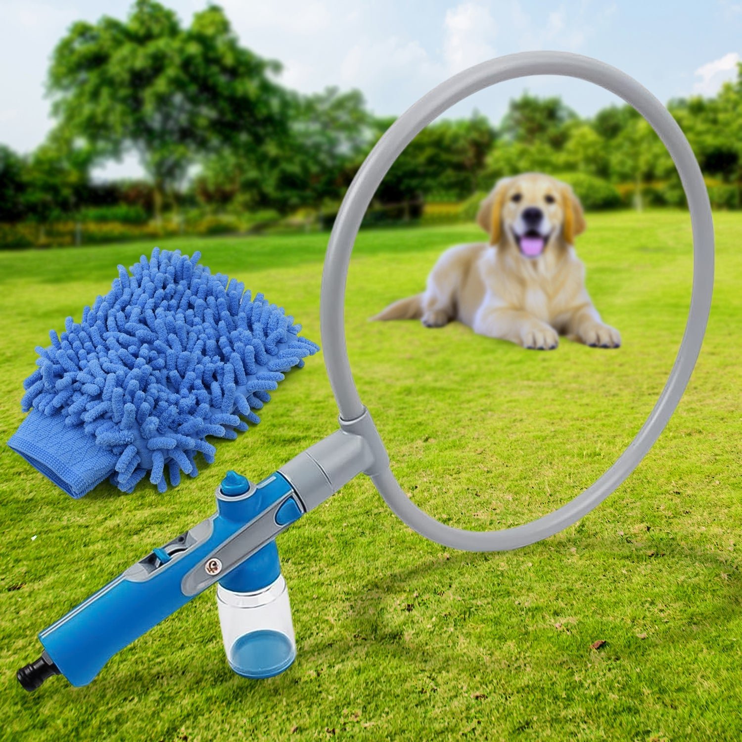 Pet Shower Sprayer, Cat Dog Grooming Bath Massager, Handheld Sprayer, 360 Degree Clean Tool Bath Shower, Ring-Shaped All-Around Woof, for Large Medium Small Dog, Indoor / Outdoor With Microfiber Glove (1 Set)
